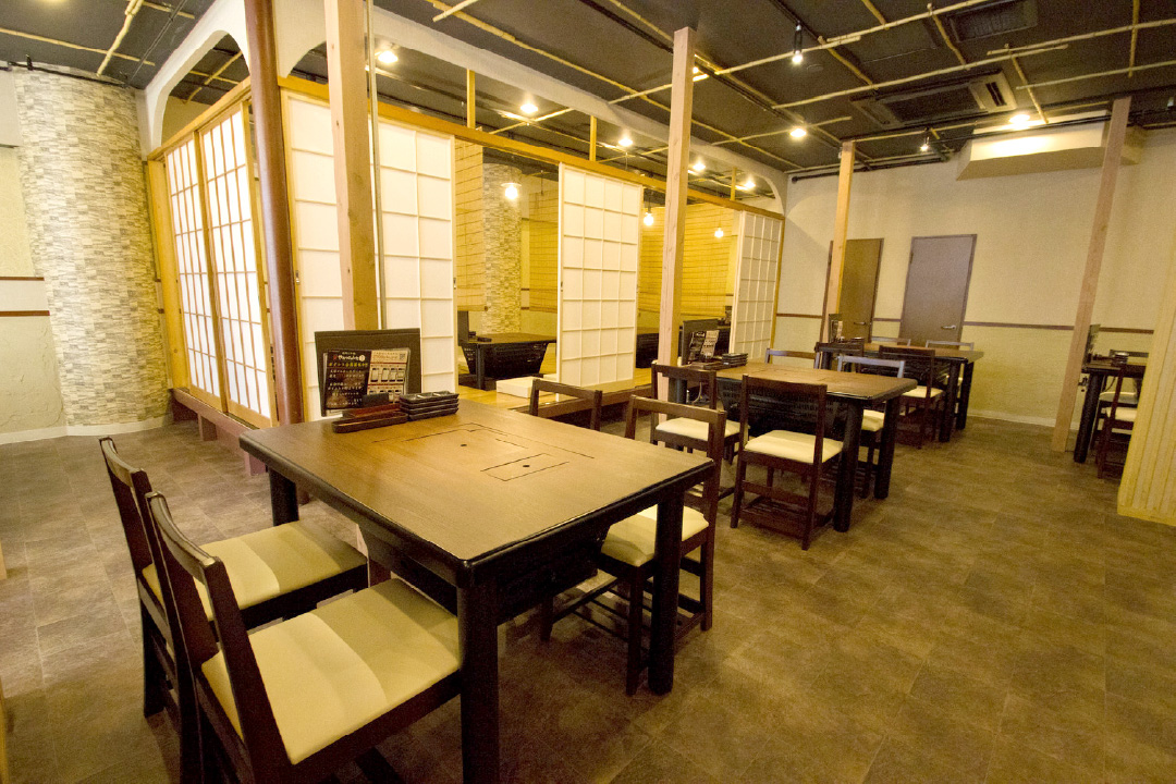 洋卓テーブルのまま設置して掘りごたつ席も対応